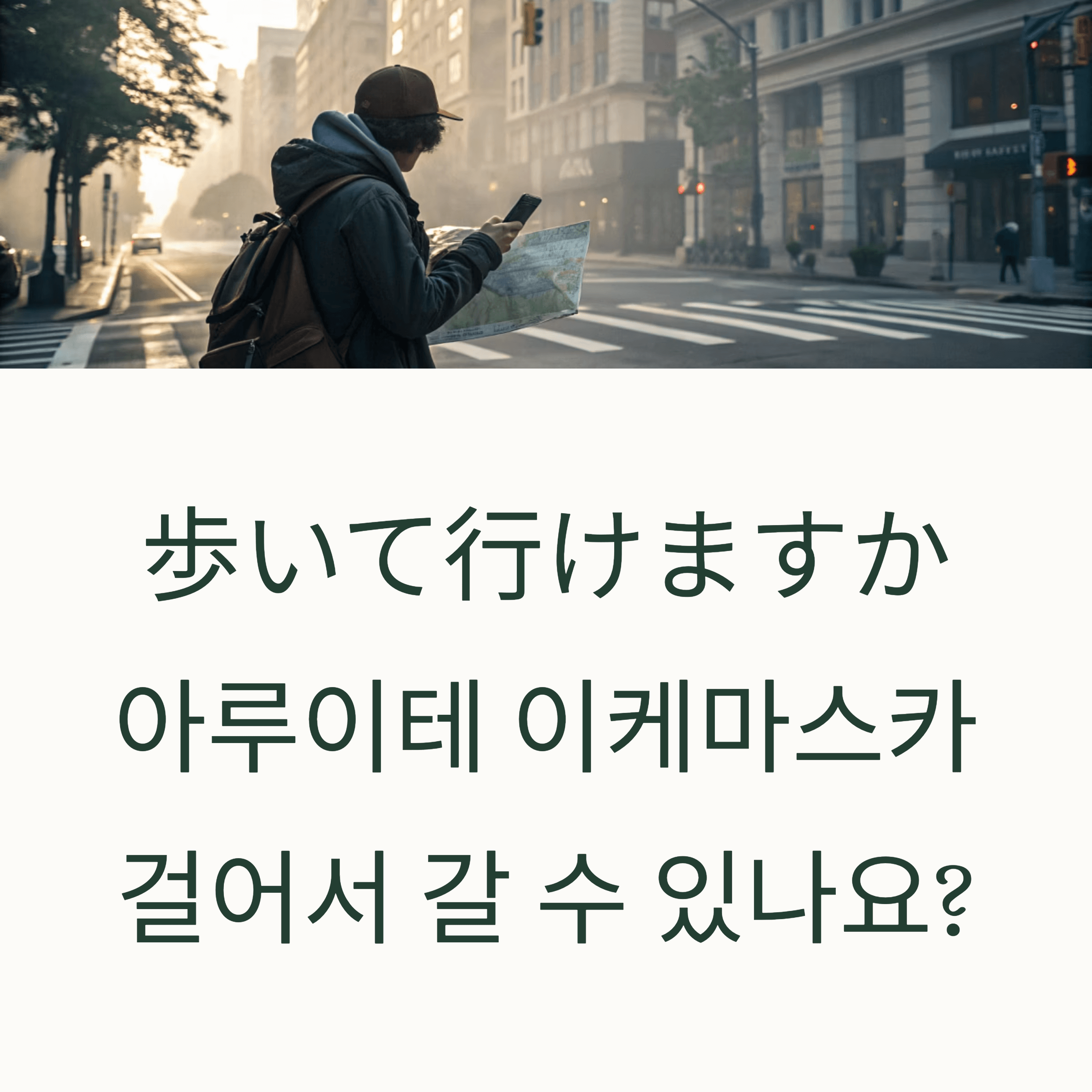 “歩いて行けますか(아루이테 이케마스카)”는 일본 현지에서 도보로 이동 가능한지 확인할 때 사용하는 실용적인 표현입니다. 특히 지하철역에서 내려서 목적지까지 거리가 애매할 때, 이 한마디면 부담 없이 물어볼 수 있어요. 정중하면서도 간단해 누구에게든 편하게 사용할 수 있답니다.