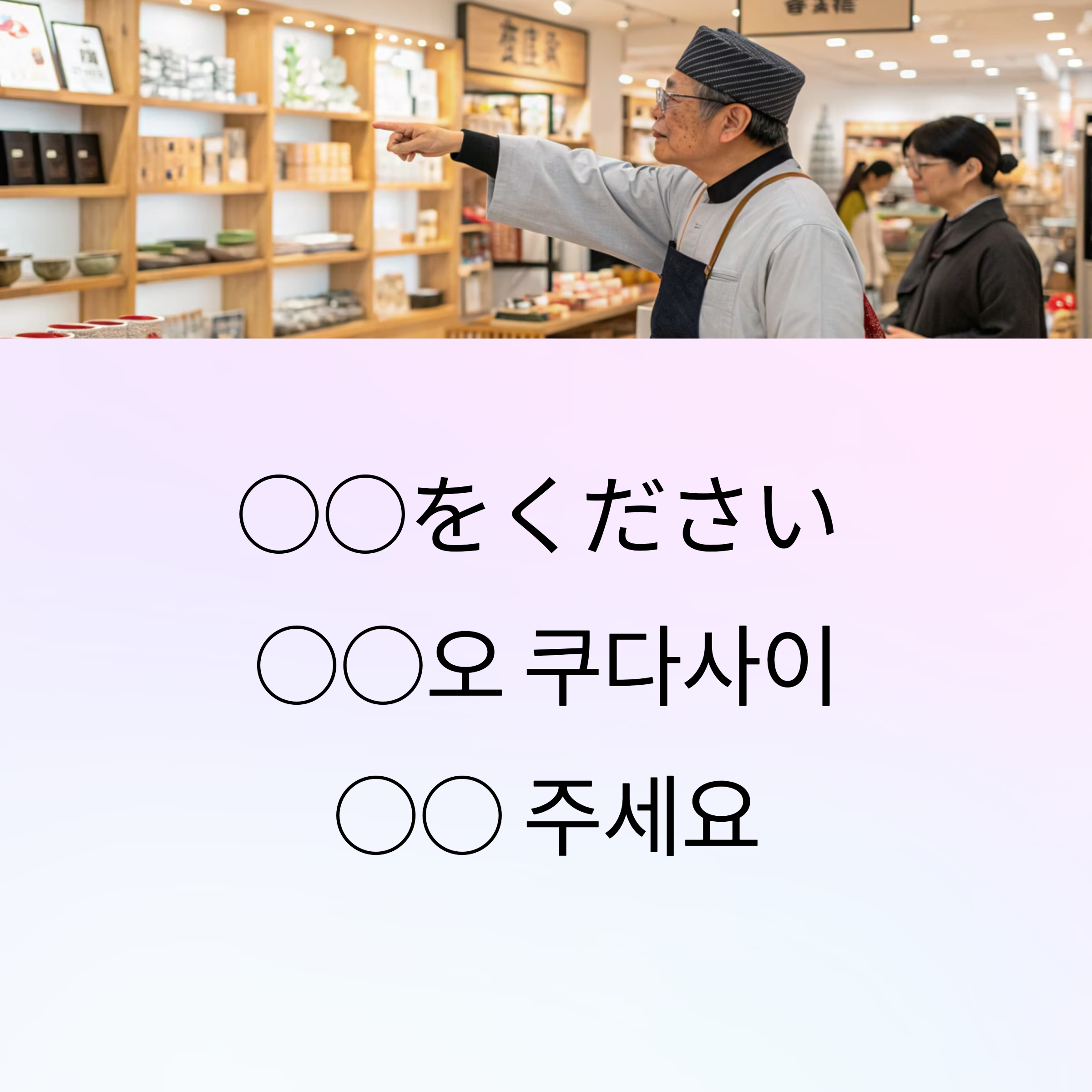 👉 ‘○○をください’는 짧고 정중해서 가장 자주 사용되는 기본 표현이에요!