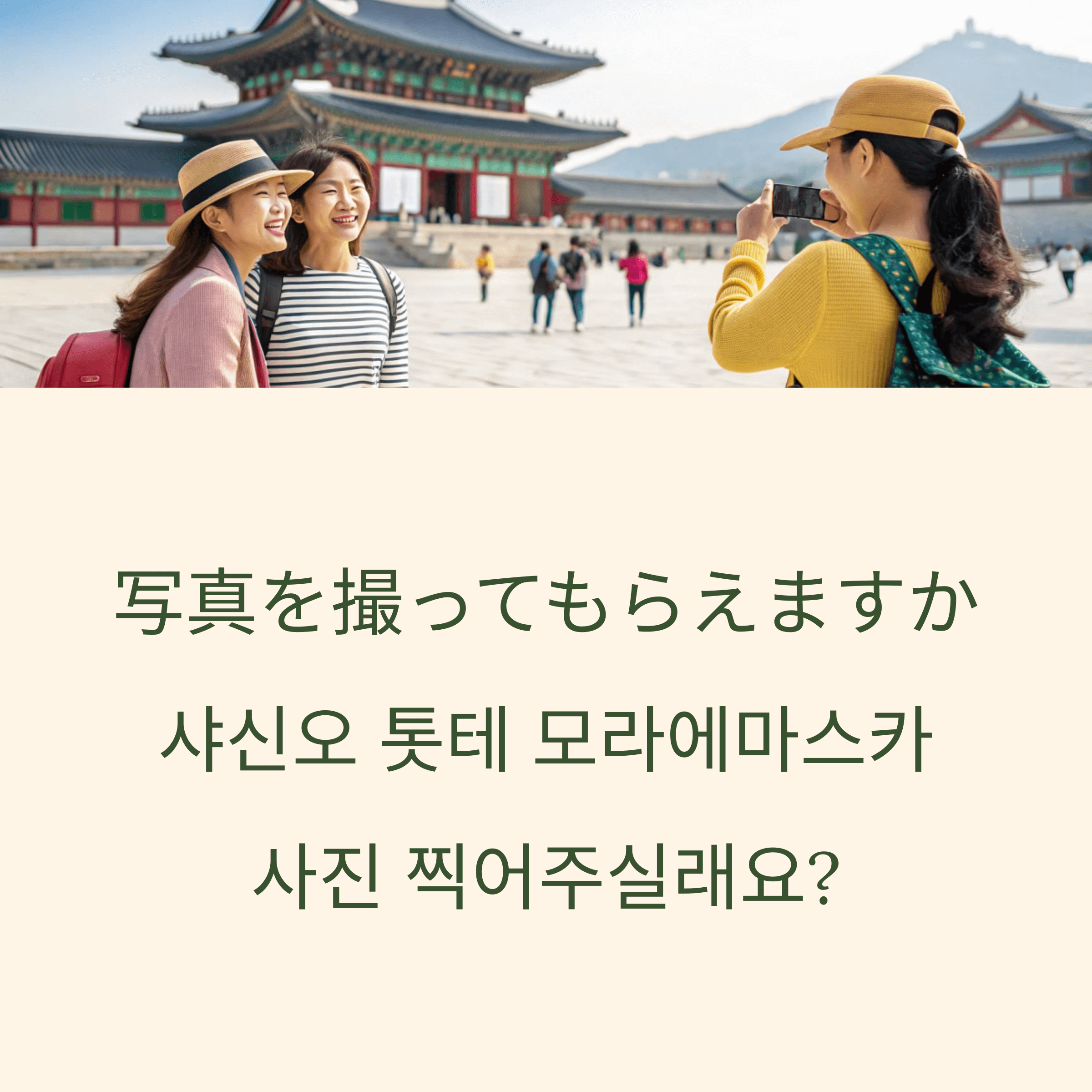 “写真を撮ってもらえますか(샤신오 톳테 모라에마스카)”는 일본 여행 중 타인에게 사진을 정중하게 부탁할 때 쓰는 매우 실용적인 표현입니다. 낯선 사람에게도 부담스럽지 않게 요청할 수 있고, 친근하고 예의 바른 인상을 줄 수 있어요. 마지막에 “ありがとうございます(감사합니다)”를 잊지 말고 덧붙이면 더 좋아요!