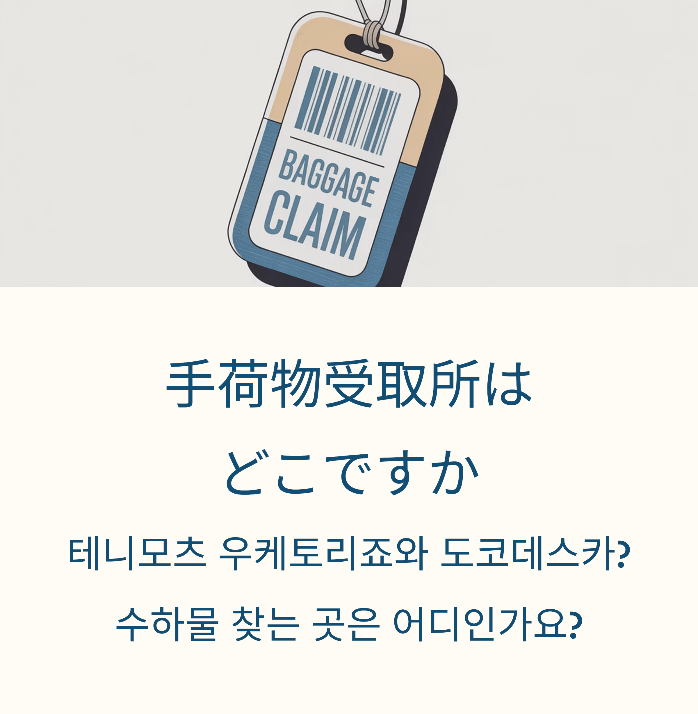 일본 공항에 도착하면 가장 먼저 해야 할 일 중 하나는 수하물(Baggage)을 찾는 것이에요. 이때 유용하게 쓸 수 있는 일본어 표현이 바로 手荷物受取所はどこですか? (테니모츠 우케토리죠와 도코데스카?)입니다.