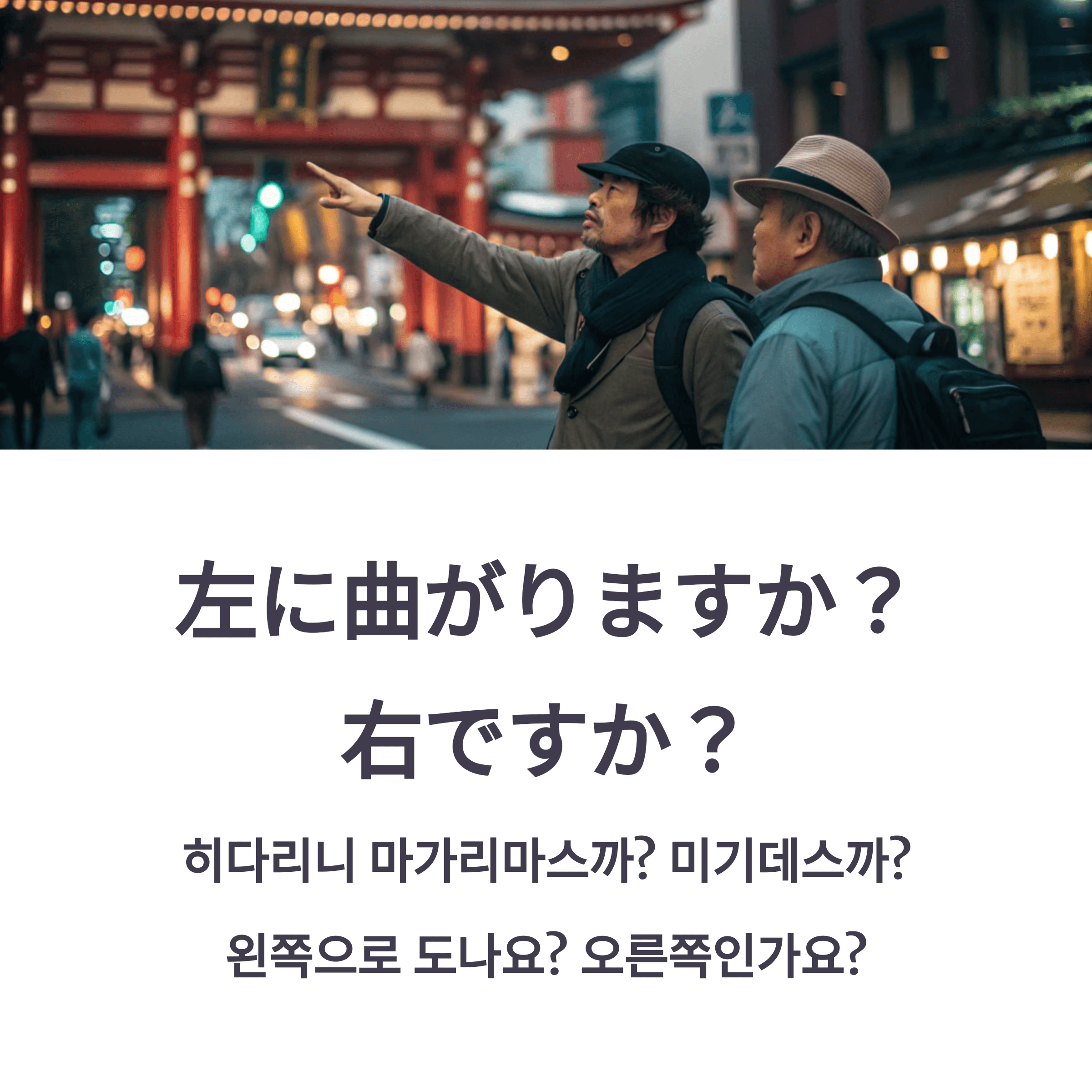 👉 “左ですか?右ですか?”(히다리데스까? 미기데스까?)처럼 간단히 물어봐도 괜찮아요.