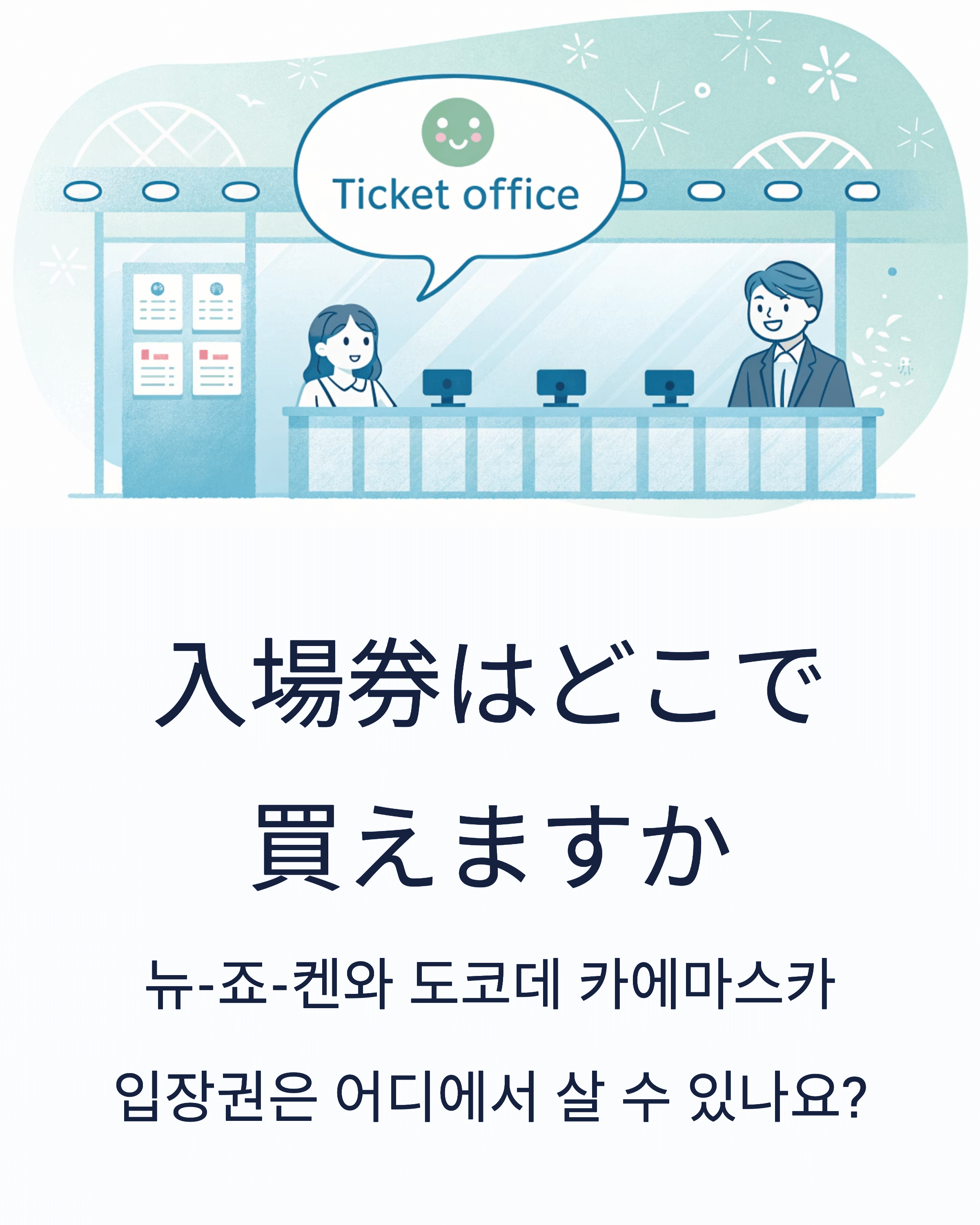“入場券はどこで買えますか(뉴죠켄와 도코데 카에마스카)”는 일본에서 입장권 판매 장소를 물을 때 사용하는 아주 실용적인 표현이에요. 예의 바른 문장이기 때문에 처음 보는 사람에게 물어봐도 친절한 답변을 얻을 수 있어요. 자동발권기, 창구, 기념품 샵 등 여러 장소에서 활용 가능합니다.